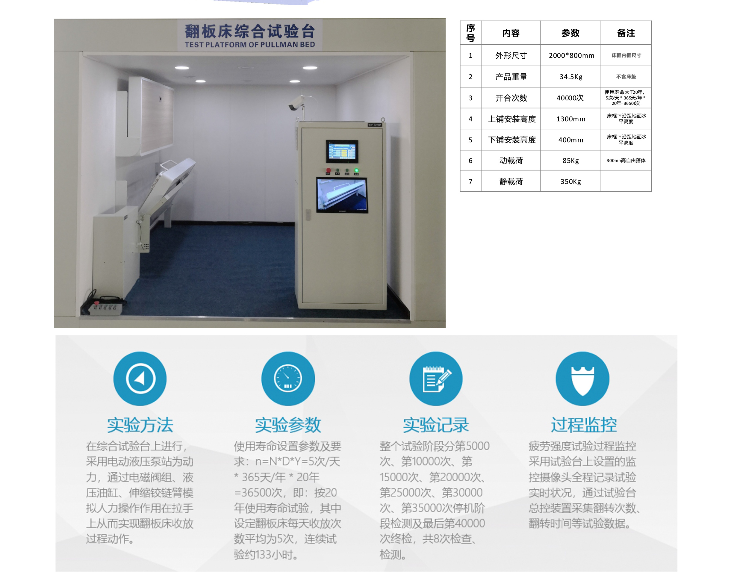 公司自主研發(fā)設(shè)計(jì)和生產(chǎn)的翻板床綜合試驗(yàn)平臺(tái)、搖擺試驗(yàn)及動(dòng)靜載荷試驗(yàn)平臺(tái)正式投入使用;試驗(yàn)平臺(tái)從結(jié)構(gòu)設(shè)計(jì)、控制系統(tǒng)設(shè)計(jì)均為我公司自主設(shè)計(jì)與制作。試驗(yàn)平臺(tái)投入使用后,將能實(shí)現(xiàn)翻板床的動(dòng)載荷、靜載荷、疲勞試驗(yàn)、搖擺試驗(yàn)等,通過(guò)實(shí)時(shí)監(jiān)控系統(tǒng)將完全記錄實(shí)驗(yàn)數(shù)據(jù),有效分析產(chǎn)品性能;