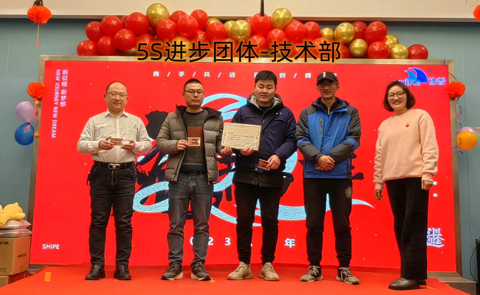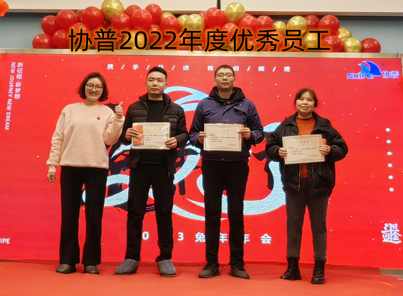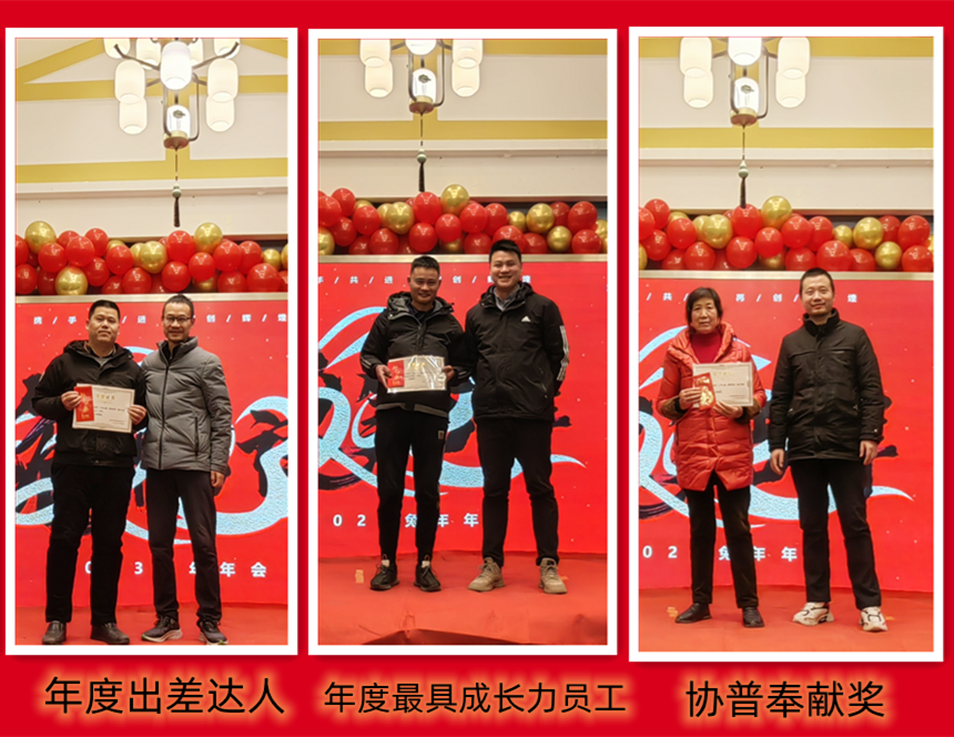 趙總致辭后,公司為2022年度表現(xiàn)優(yōu)異的團(tuán)隊(duì)和個人進(jìn)行了表彰。人才是公司生存和發(fā)展之本。公司發(fā)展的每一步都離不開每個協(xié)普人的努力和付出。本年度公司共評選出三名優(yōu)秀員工——陶海基、楊剛、徐金鳳,“2022年度突出貢獻(xiàn)獎”——張傳東、桂佳俊,“2022年度敬業(yè)獎”——陳阿龍,“年度宣傳小能手”——宋玉秋;“協(xié)普年度出差達(dá)人”——胡金龍,“年度最具成長力員工”——王傳銀,“5S進(jìn)步團(tuán)體”——技術(shù)部、車間鉚焊班,“質(zhì)量進(jìn)步團(tuán)體”——質(zhì)量部,“協(xié)普奉獻(xiàn)獎”——劉庭玉。